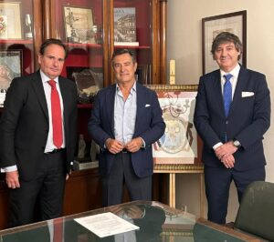 En la imagen, Óscar Fernández León, presidente de ASEMARB y Pedro Delgado Moreno, Secretario General de la Cámara de Comercio de Sevilla con el Presidente del Colegio de Médicos de Sevilla, Alfonso Carmona Martínez.