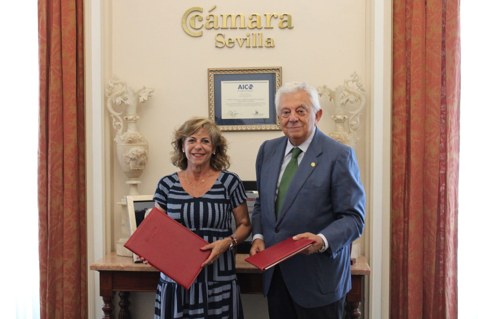 La Cámara de Comercio de Sevilla y el Ayuntamiento San Juan de Aznalfarache han firmado un convenio marco para la ejecución de programas que la Cámara gestiona dirigidos al fomento del empleo, el emprendimiento, la competitividad y la internacionalización, así como el acceso a las prestaciones de asesoramiento técnico en el ámbito de las soluciones empresariales y la oficina técnica municipal.