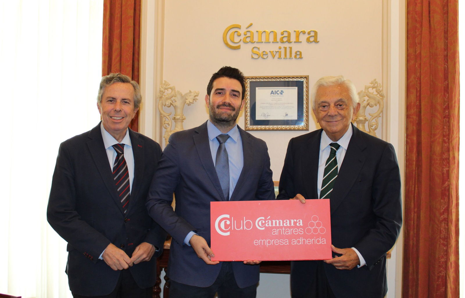 Se incorpora al Club Cámara Antares en la modalidad de Adherida la empresa ANDALUBOX . Gregorio García Martín-Toral, su CEO, junto a Salvador Fernández, Director Gerente, y Francisco Herrero, Presidente de la Cámara de Comercio de Sevilla.