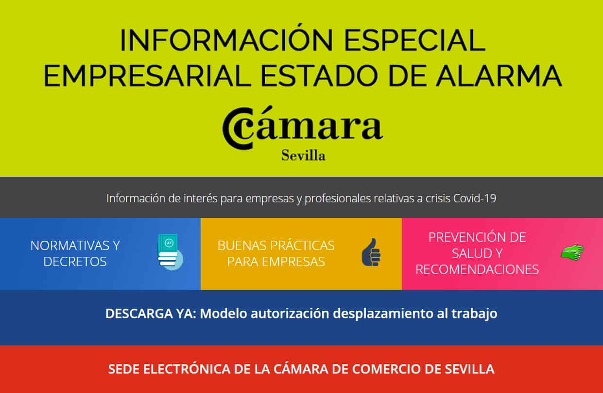 Asimismo y con el objetivo de ofrecer información detallada y ante la grave situación creada por la pandemia del Coronavirus, la Cámara de Comercio de Sevilla, ofrece un lugar destacado en la WEB de la Corporación,www.camaradesevilla.com, en la que se vuelca toda a información sobre las medidas que pueden afectar a las empresas sevillanas.