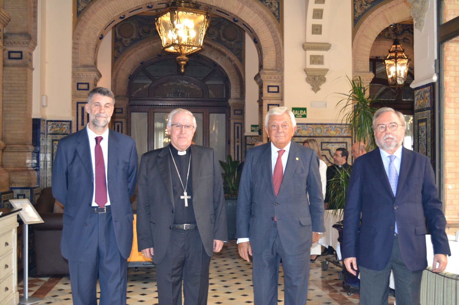 La Fundación Cámara de Comercio de Sevilla ha celebrado un almuerzo-coloquio en el que ha participado el Arzobispo de Sevilla, Monseñor D. José Ángel Saiz Meneses que ha ofrecido una ponencia que lleva por título “Soñemos Juntos”