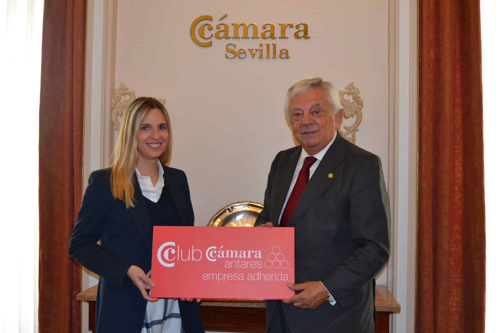 » Se incorpora al Club Cámara, AUTOCARES PAULINO, empresa familiar sevillana dedicada al transporte regular y discrecional de viajeros por carretera con más de cuarenta años en el sector. En la foto, María Jesús Caro Abascal, su Directora General junto al Presidente de la Cámara de Comercio de Sevilla, Francisco Herrero»