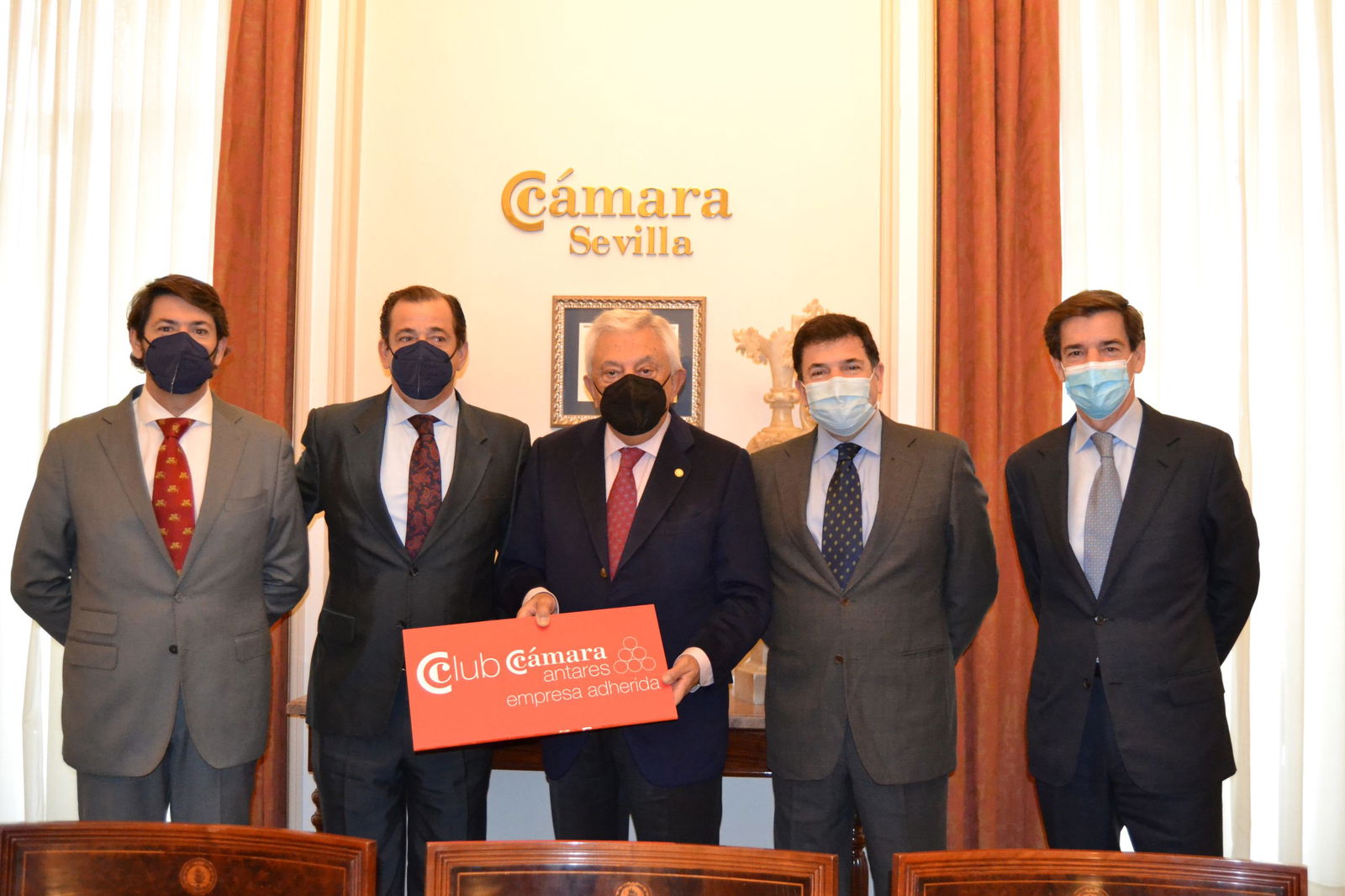 «Se incorpora al Club Cámara Antares en la modalidad de Adherida la empresa B & V ASESORES INMOBILIARIOS, Francisco José Benitez López – Responsable de suelos, Salvador Benitez López – Responsable de desarrollo turístico, Javier Benitez López – Responsable de inversiones y Rafael Benitez López – Responsable de Retail junto a Francisco Herrero, Presidente de la Cámara de Comercio de Sevilla «