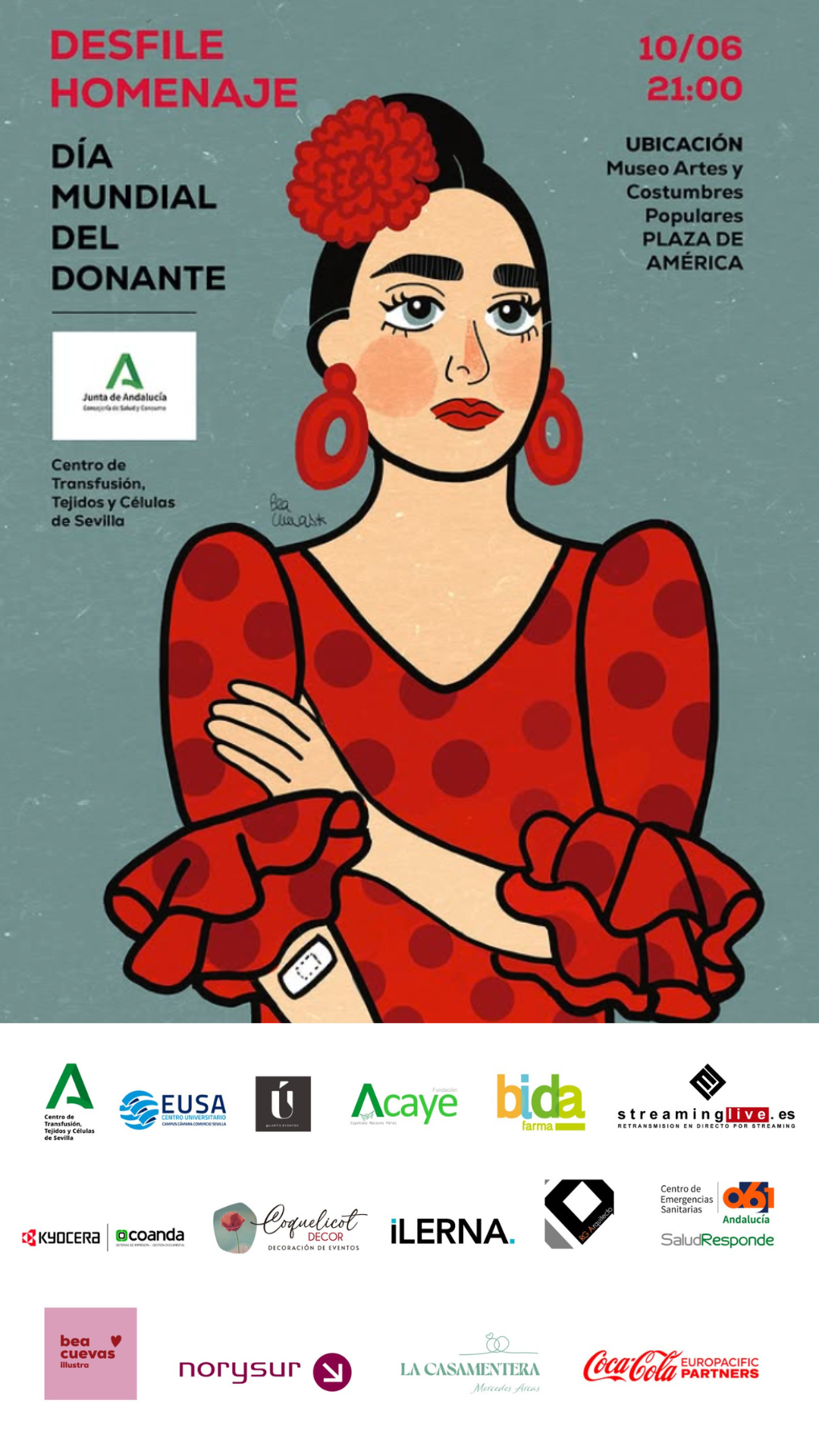 El desfile se celebró el martes 10 de junio a las 21:00 horas en las escalinatas exteriores del Museo de Artes y Costumbres Populares (Plaza de América), con acceso gratuito para donantes de sangre (previa presentación de su carné de donante) y acompañantes. El público general asistió de pie. Coanda-Kyocera agradece al Centro de Transfusión, Tejidos y Células de Sevilla la oportunidad de participar en esta iniciativa y se enorgullece de poder colaborar en un proyecto que visibiliza la importancia de la donación y el compromiso social