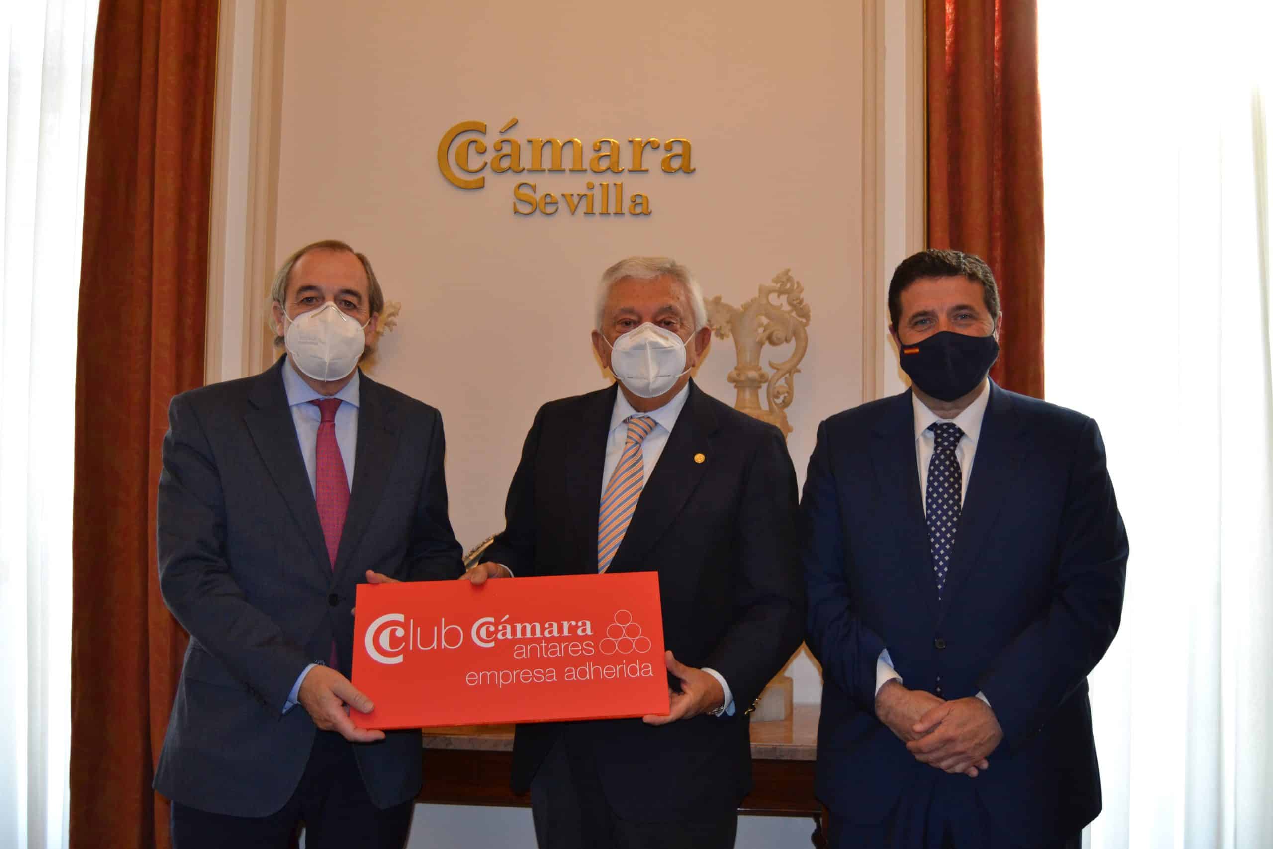 «Se incorpora al Club Cámara Antares en la modalidad de Adherida la empresa DANTIA TECNOLOGÍA a la izquierda de la foto J. Ignacio Estrade (CEO de Dantia), a la derecha de la foto J. Ignacio Martínez, (Director de Comunicación y Desarrollo de Negocio de Dantia), junto a Francisco Herrero, Presidente de la Cámara de Comercio de Sevilla