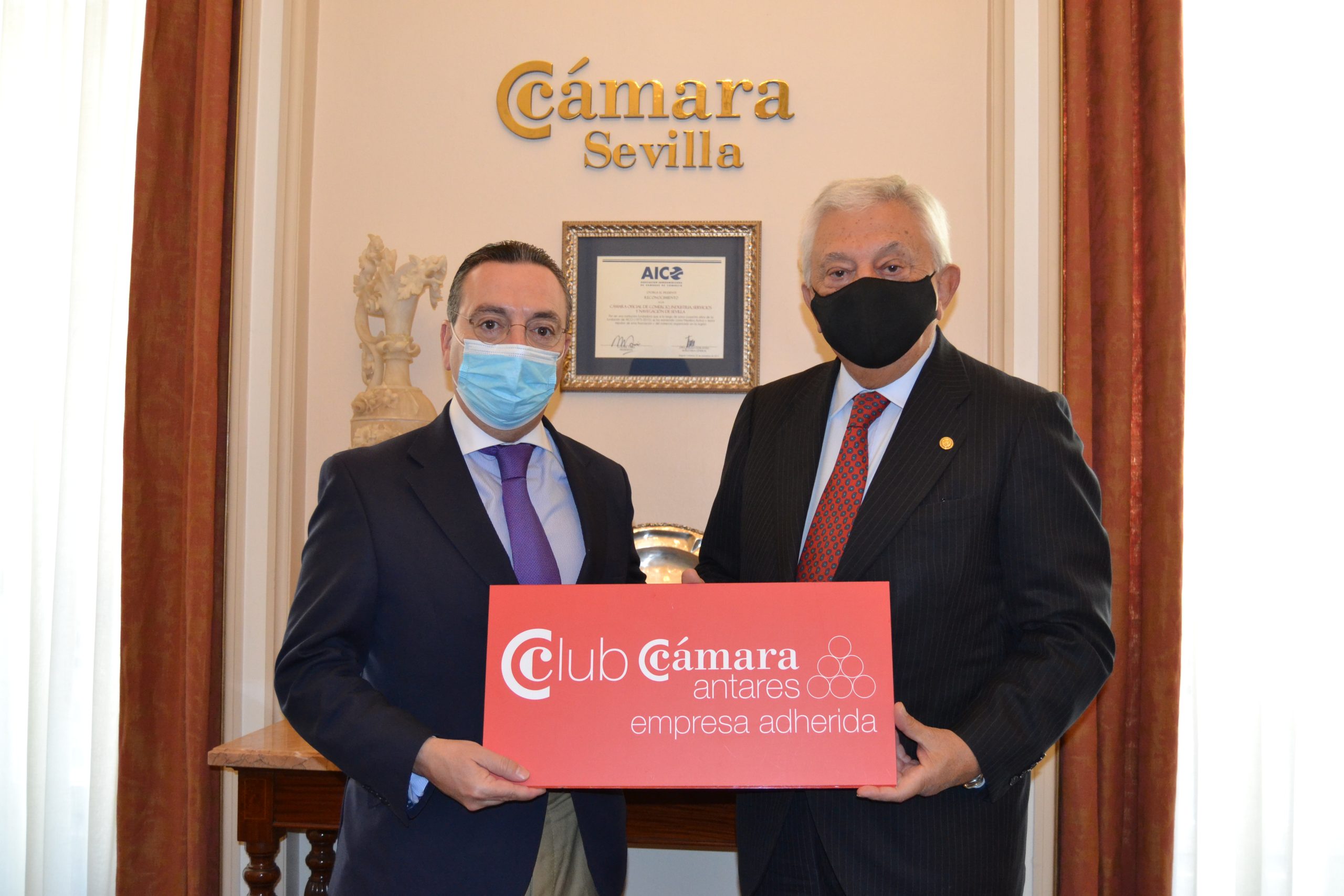 «Se incorpora al Club Cámara Antares en la modalidad de Adherida la empresa DISTRIBUCIONES VIÑAFIEL , Luis Galán, su Presidente, junto a Francisco Herrero, Presidente de la Cámara de Comercio de Sevilla .