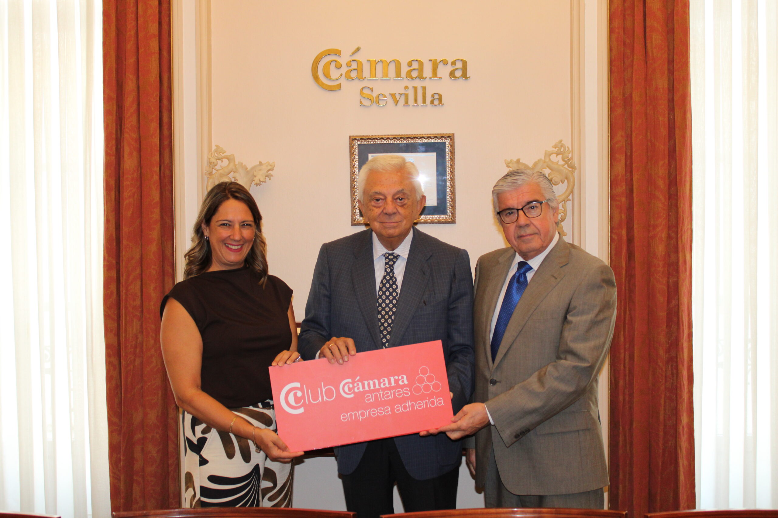 Se incorpora al Club Cámara Antares en la modalidad de Adherida la empresa EDYMA MEDIOS AUDIOVISUALES. Cristina Hernández, su Directora General, y Juan José Hernández, su presidente, junto a Francisco Herrero, Presidente de la Cámara de Comercio de Sevilla.