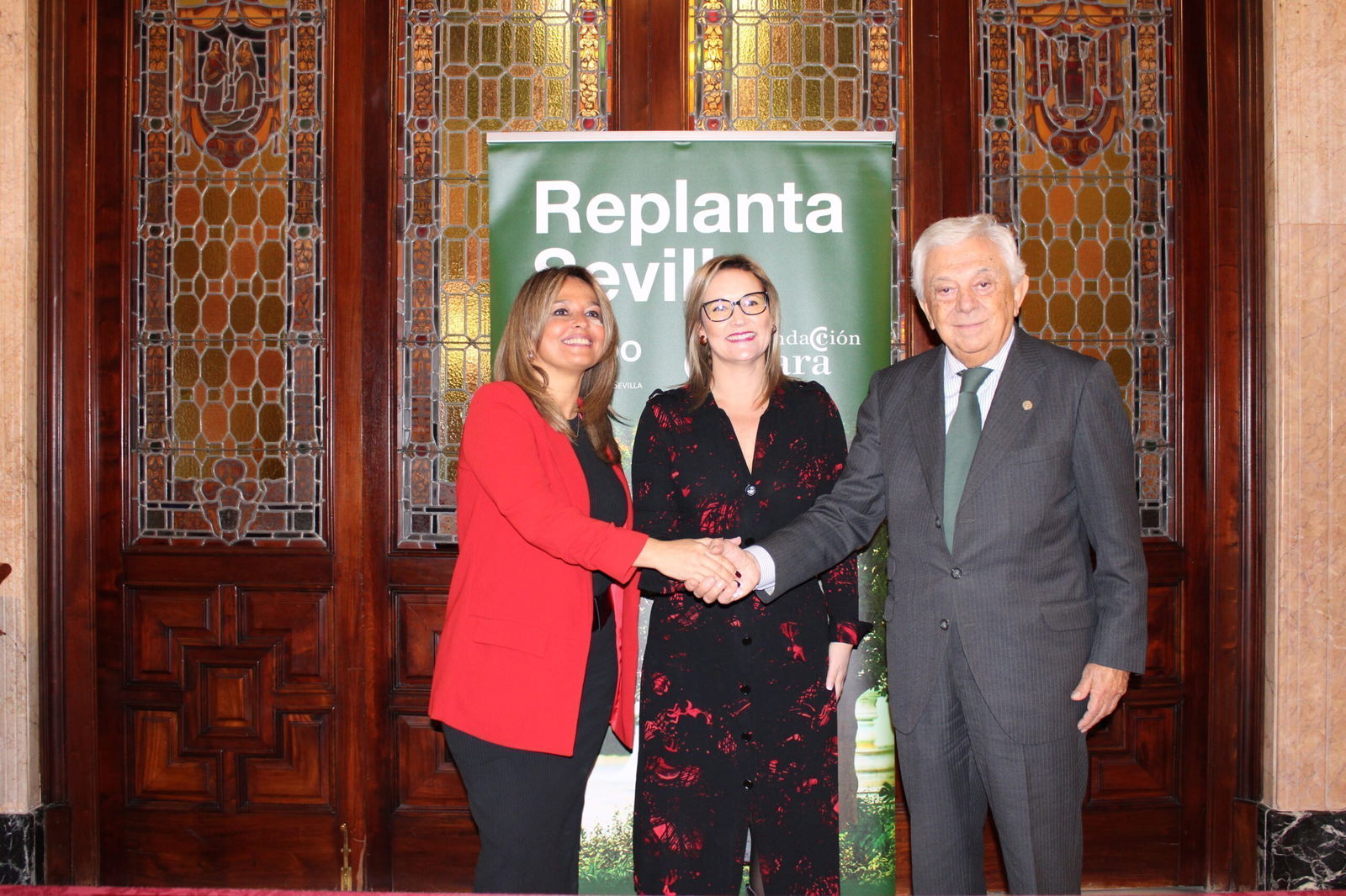 Alicia Carrillo Oya, directora general de Macrosad, ha firmado el documento de adhesión al proyecto ‘Sevilla Replanta’ junto al presidente de la Fundación Cámara de Comercio de Sevilla, Francisco Herrero y a la delegada del Área de Limpieza, Arbolado y Parque y Jardines, Espacio Público, Cementerio y Protección Animal, Evelia Rincón.