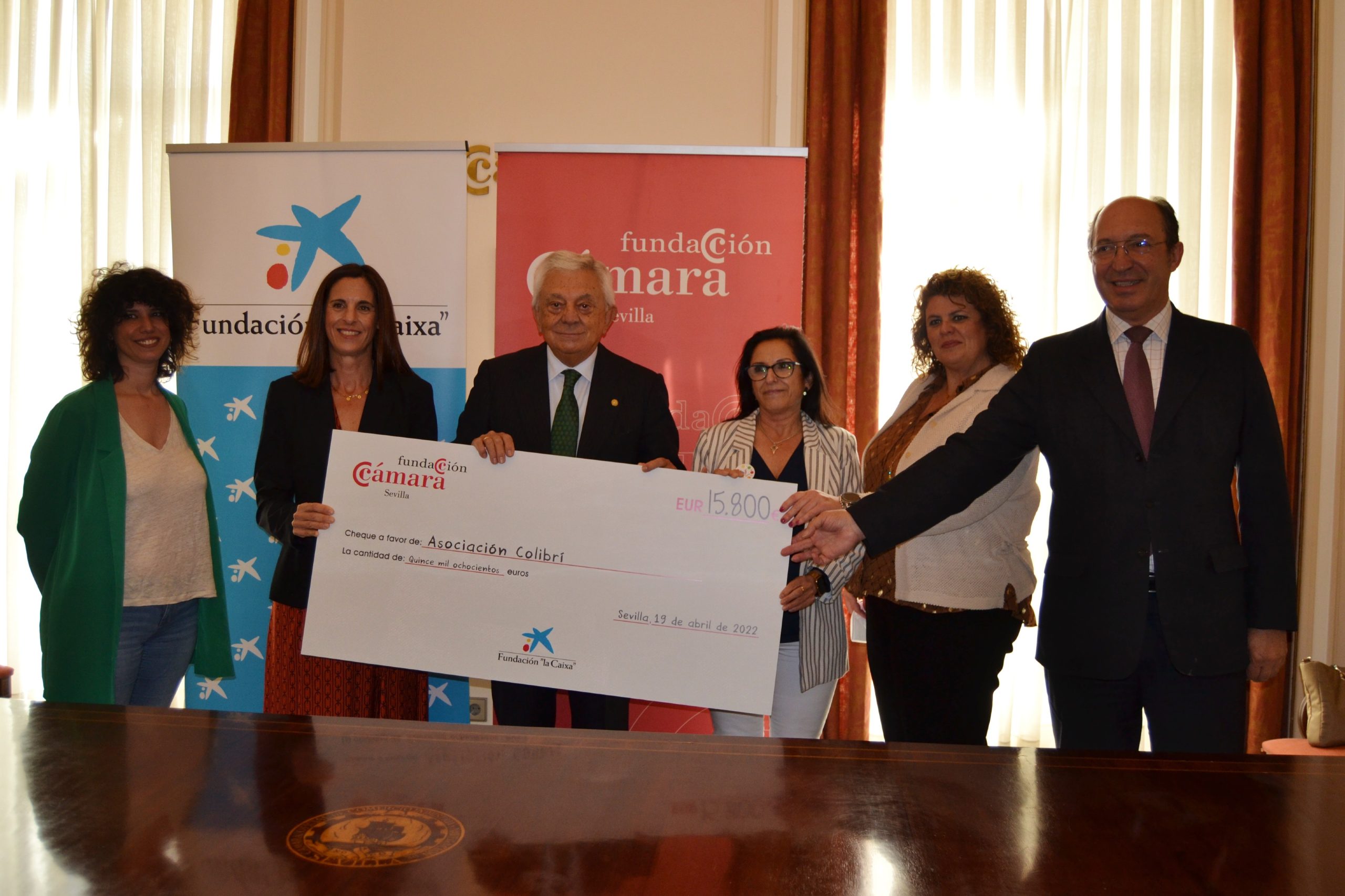 La Fundación Cámara y la Fundación la Caixa han hecho entrega de la recaudación de la Gala Benéfica “Dame tu mano” que se celebró el pasado 9 de marzo en el Teatro Cartuja Center. Un total de 15.800 euros, que van dirigidos a la Asociación Colibrí.