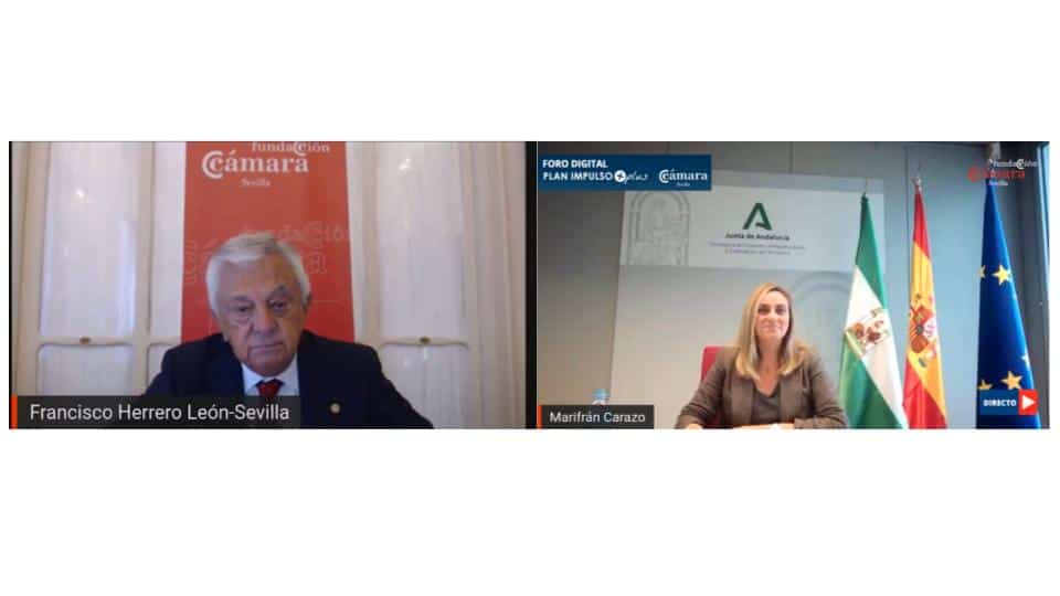 Marifrán Carazo, durante su intervención en el foro digital Andalucía tras el Covid. Claves para la reactivación económica de la Cámara de Comercio de Sevilla, ha subrayado la apuesta del Gobierno andaluz por el desarrollo de los puertos y áreas logísticas. En el caso de Sevilla esta apuesta va a suponer la reordenación de La Negrilla y el impulso al nodo logístico de Majarabique, cuya ampliación se espera financiar con fondos Feder. “Majarabique debe ser y va a ser el gran área logística de Sevilla, por su ubicación estratégica, porque tiene comunicación con los viales más importantes de la ciudad, por contar con una playa de vías ferroviarias que va a ser de gran trascendencia para su desarrollo e impulso, por estar cerca del puerto y porque las empresas van a tener acceso directo para cargar su producto en los trenes”, ha explicado la consejera.