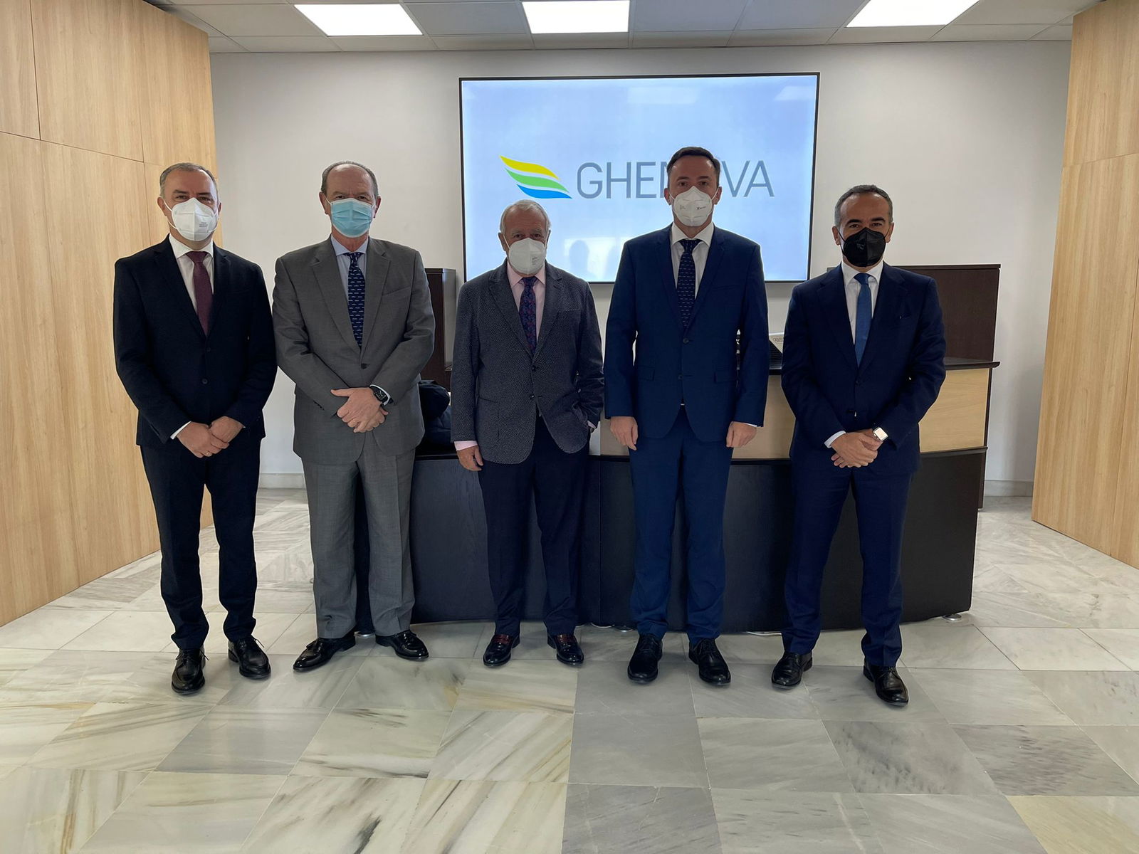 El Presidente de Navantia, Ricardo Domínguez, acompañado por su asesor el Almirante Javier Romero, visitan las oficinas centrales de GHENOVA en Sevilla y se reúnen con el Presidente de GHENOVA, Carlos Alejo, el CEO, Francisco Cuervas, y el Director General Corporativo, Raúl Arévalo.