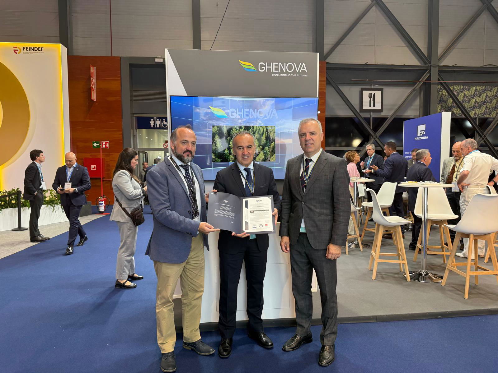 La entrega oficial del certificado tuvo lugar en el marco de la Feria Internacional de Defensa y Seguridad (FEINDEF 2025), en el stand de GHENOVA, donde Raúl Mesa, director de Explotación Andalucía de OCA GLOBAL, hizo entrega del reconocimiento a Francisco Cuervas, CEO de GHENOVA, y Raúl Arévalo, director general de la compañía.