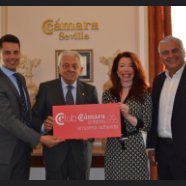 «Se incorpora al Club Cámara Antares en la modalidad de Adherida la empresa IMÁN, Paula Fernández Leal-Directora de Grandes Cuentas y Operaciones Área Sur, Ernesto Sisto Codes-Director División Formación y Consultoría y Javier Guerra-Director División Puertos, junto a Francisco Herrero, Presidente de la Cámara de Comercio de Sevilla .