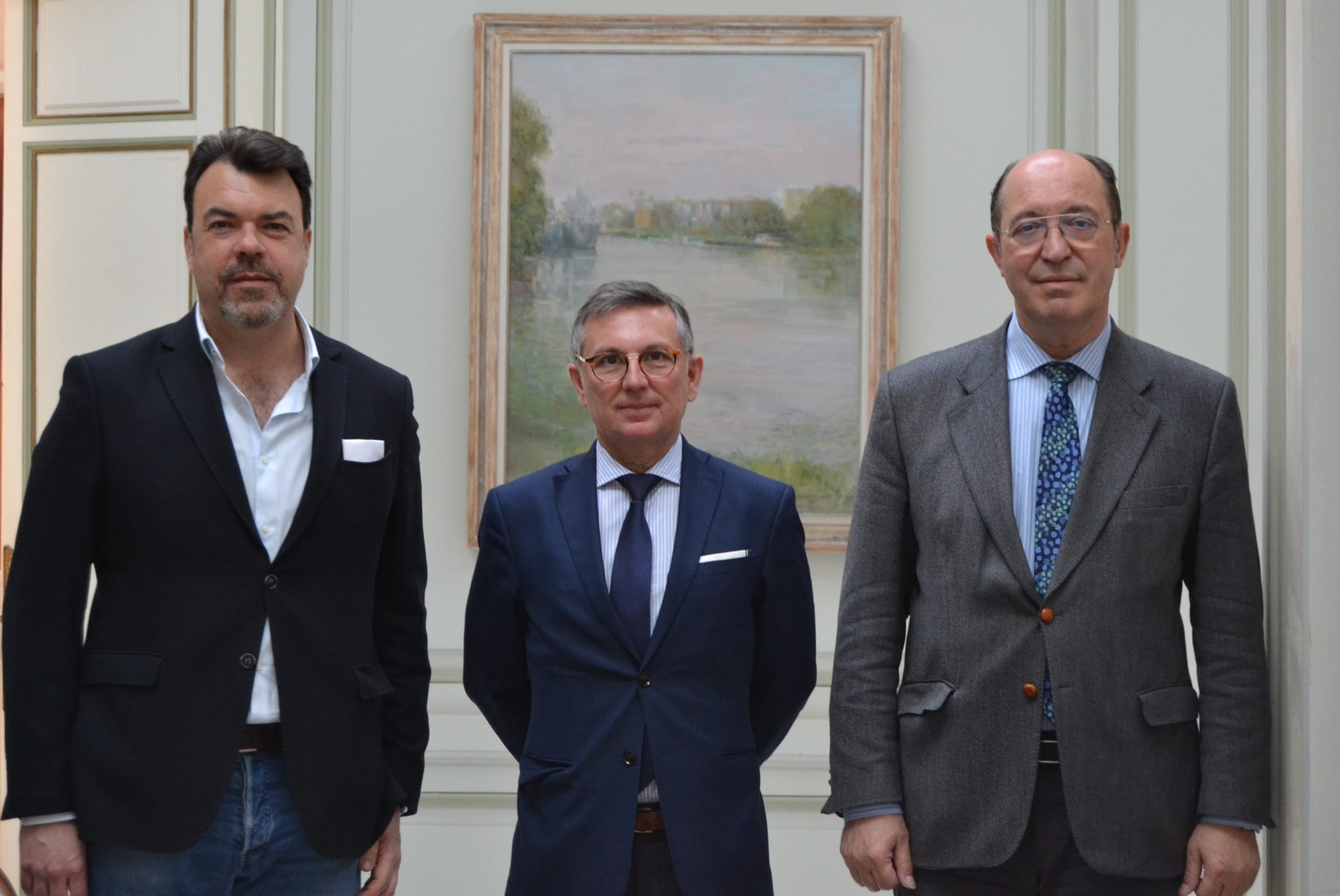 De izquierda a derecha, Pedro Arriola CEO y fundador de la empresa Turify y los representantes del SCCB Ángel Díaz, presidente y Manuel Macías, director.