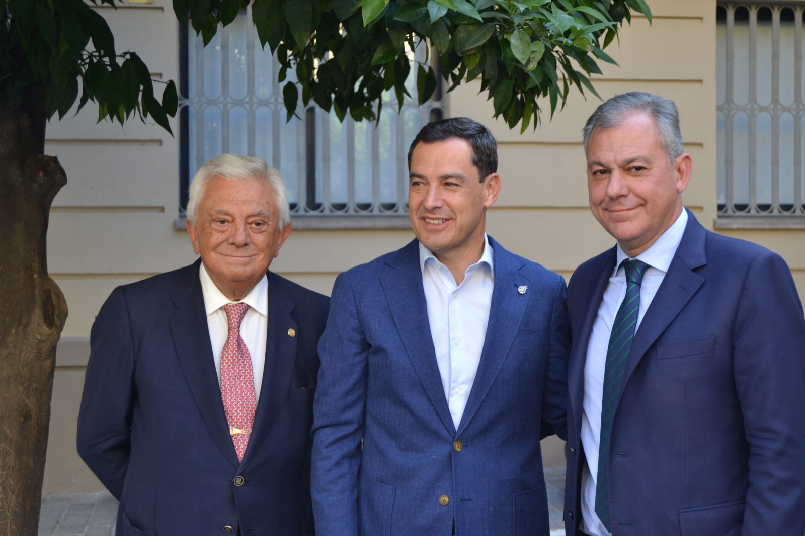 El presidente de la Cámara de Comercio de Sevilla, Francisco Herrero recibió en la sede de la Fundación Cámara de Sevilla a las decenas de asistentes, entre los que se encontraban los consejeros de la Junta Antonio Sanz, José Antonio Nieto y Patricia del Pozo; el alcalde de Sevilla, José Luis Sanz; el delegado del Gobierno de la Junta en Sevilla y presidente del PP en Sevilla, Ricardo Sánchez, entre otros.