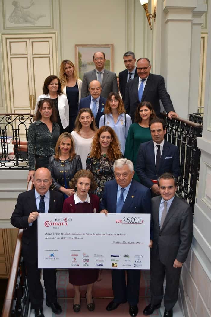 La Cámara de Comercio de Sevilla ha hecho entrega de la recaudación de la Gala Flamenca, celebrada el pasado 10 de marzo en el Teatro de la Maestranza , un total de 25.000 euros, a la Asociación de Padres de Niños con Cáncer de Andalucía.