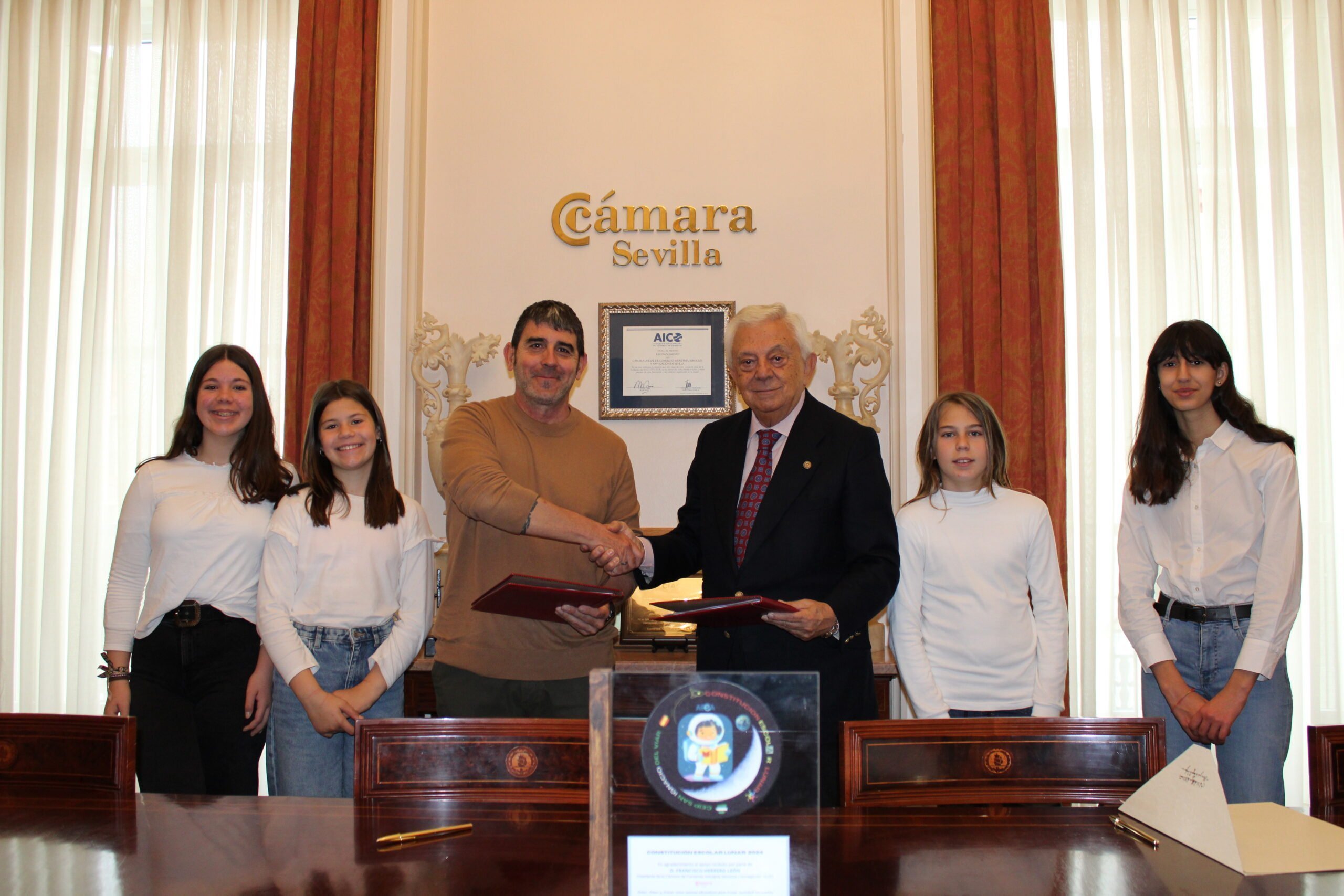 Sevilla, 13 de marzo de 2025.- La Cámara de Comercio de Sevilla, ha suscrito un acuerdo de colaboración con el Colegio de Educación Infantil y Primaria San Ignacio del Viar de Alcalá del Río para financiar parte de su viaje a Alemania donde el Colegio presentará el “Proyecto Escolar de Constitución Lunar”.