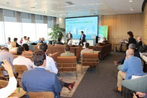 La primera de las mesas redondas contó con la intervención de Julio Marco, gerente de compras de Mercadona, que presentó el caso de éxito de la compañía en su estrategia de descarbonización, centrada especialmente en eficiencia energética y movilidad sostenible. Una charla en la que estuvo acompañado por Gonzalo Sánchez, Business Development Manager de Elmya Instalaciones y en la que compartieron la férrea alianza entre Elmya y Mercadona para trabajar juntos por la descarbonización.