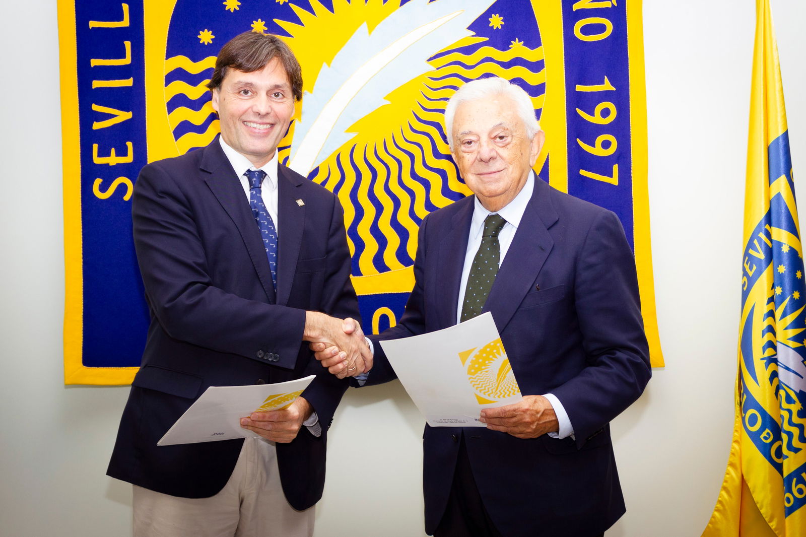 Sevilla, 15 de noviembre de 2025.- El rector de la Universidad Pablo de Olavide, Francisco Oliva, y el presidente de la Cámara de Comercio de Sevilla, Francisco Herrero, han firmado un protocolo de colaboración para fomentar el desarrollo de acciones conjuntas que potencien el desarrollo profesional de sus estudiantes desde la mayor cercanía entre el mundo profesional, las empresas que lo conforman y sus necesidades.