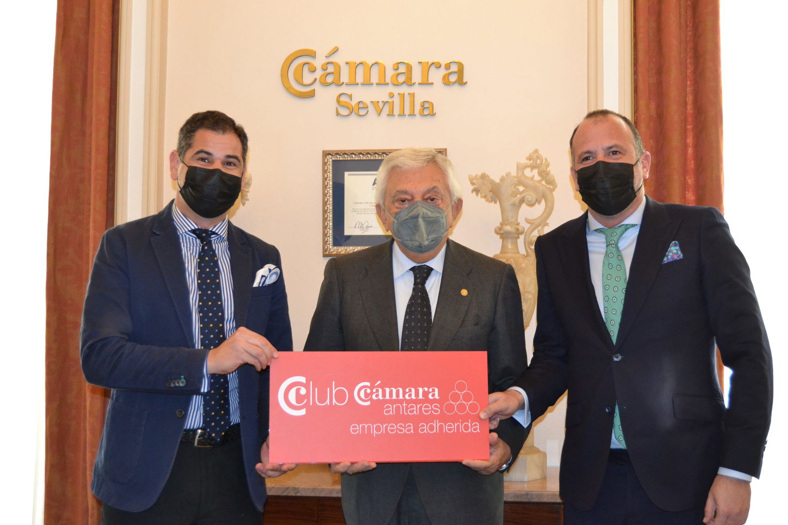 «Se incorpora al Club Cámara Antares en la modalidad de Adherida la empresa LIMPIEZAS LA TRINIDAD, Javier Trinidad-Gerente y Miguel Ángel Trinidad-Presidente, junto a Francisco Herrero, Presidente de la Cámara de Comercio de Sevilla .