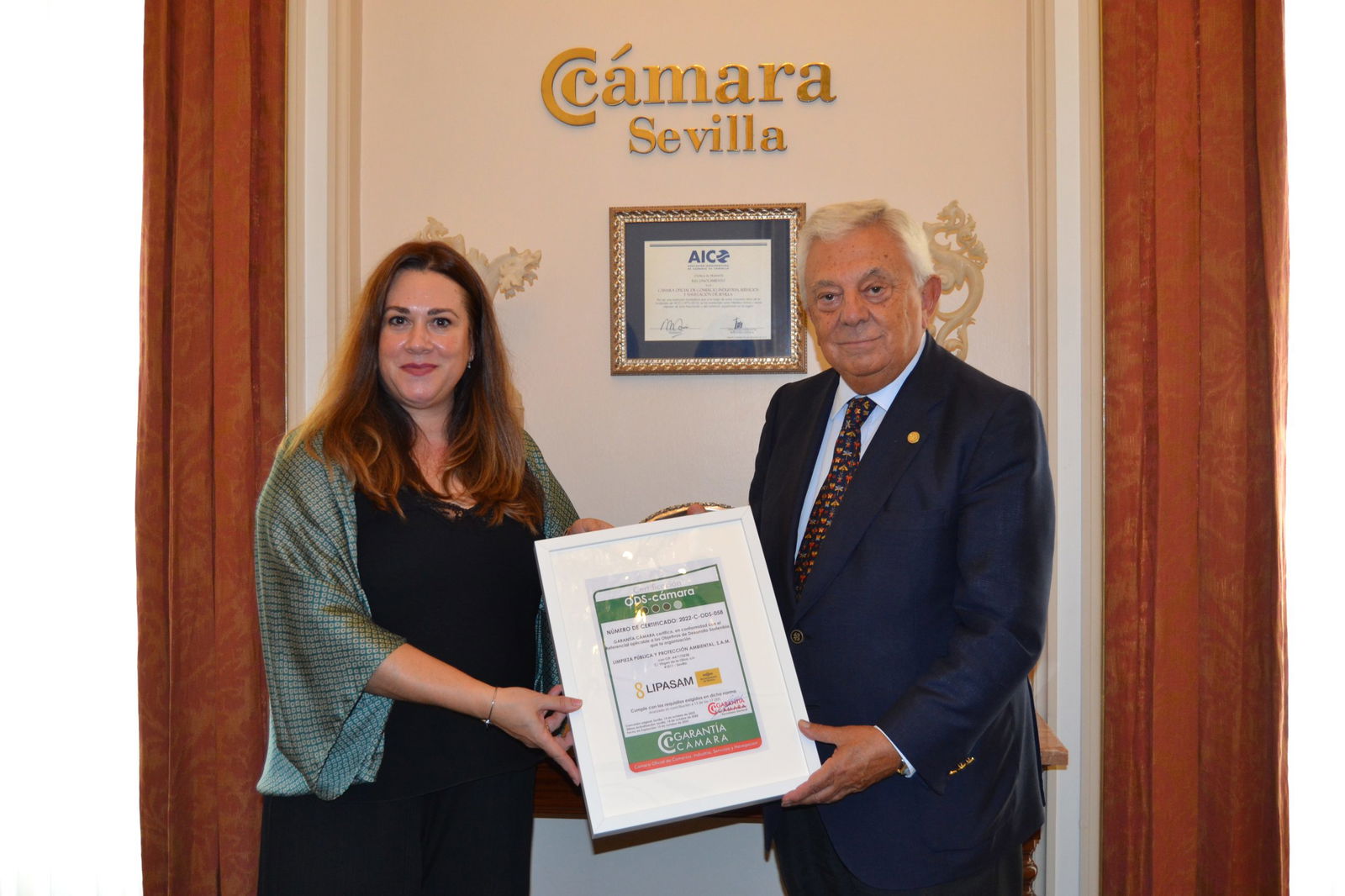 La empresa de limpieza del Ayuntamiento de Sevilla ha recibido el certificado de Garantía ODS- Cámara reconociendo su labor en materia de sostenibilidad y desempeño en la consecución de los objetivos globales marcados por Naciones Unidas.