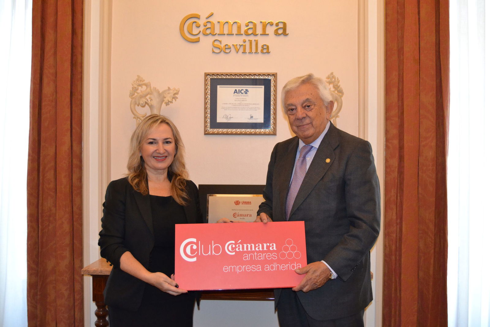 Se incorpora al Club Cámara Antares en la modalidad de Adherida LLOPIS SERVICIOS AMBIENTALES, Ana Llopis, Presidenta Ejecutiva de Grupo Llopis Servicios Ambientales junto a Francisco Herrero, Presidente de la Cámara de Comercio de Sevilla.