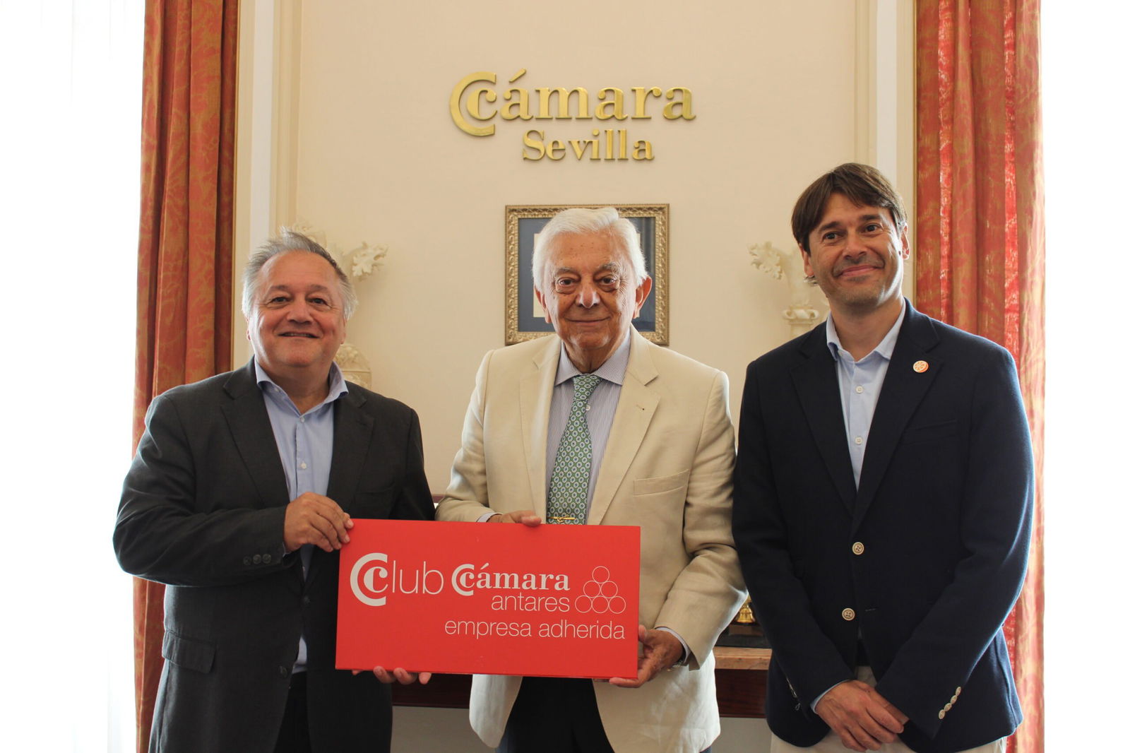 Se incorpora al Club Cámara Antares en la modalidad de Adherida la empresa MUCHODEPORTE. Paco Cepeda, su CEO y Miguel Ángel Chazarri, Director del medio, junto a Francisco Herrero, Presidente de la Cámara de Comercio de Sevilla.