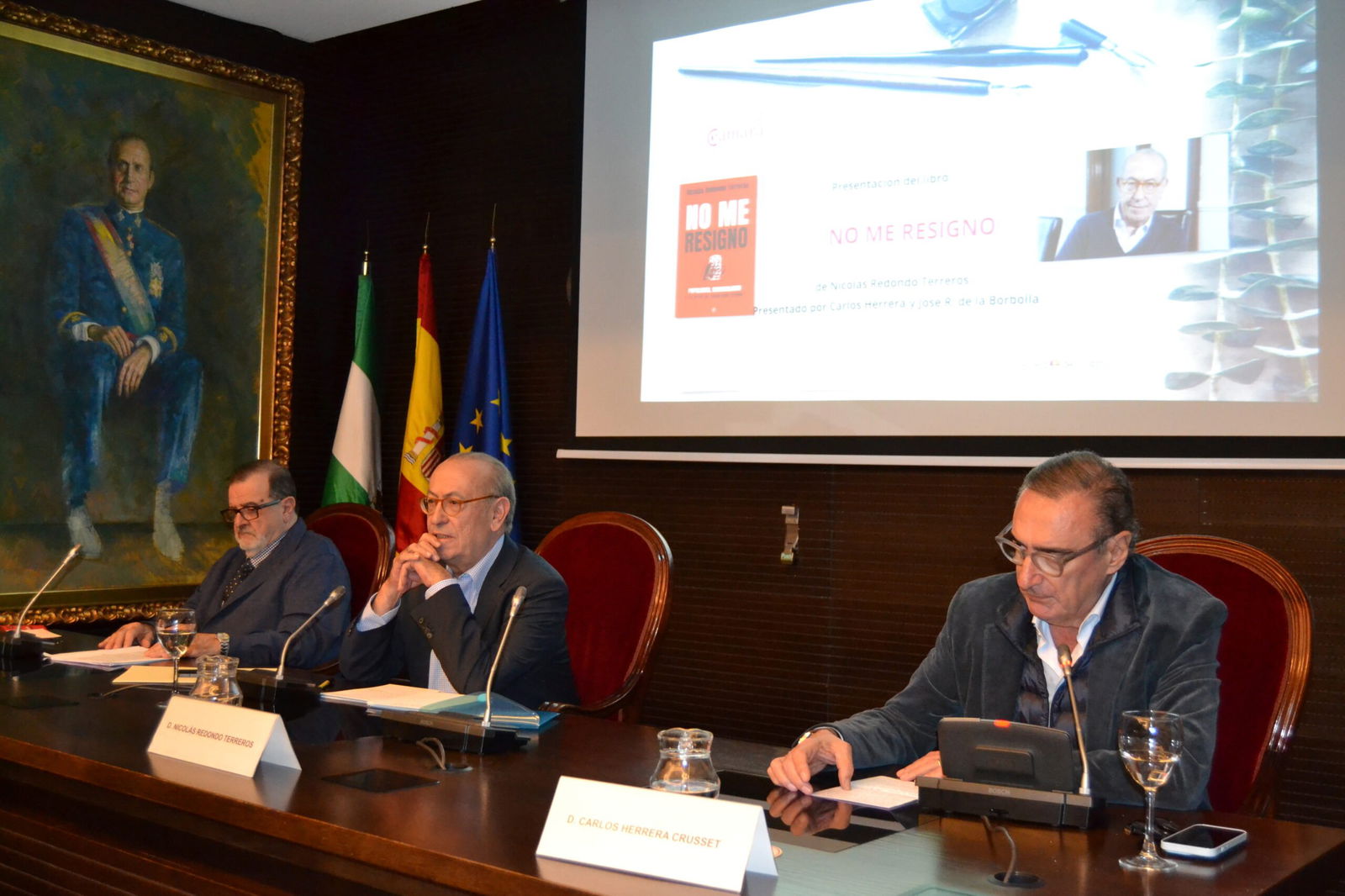La Fundación Cámara de Sevilla ha acogido la presentación del nuevo libro de Nicolás Redondo Terreros, ‘No me resigno. Populismo, nacionalismo y los retos del socialismo español’, que ha sido presentado por el periodista Carlos Herrera y José Rodríguez de la Borbolla, presidente de la Junta de Andalucía desde 1984 hasta 1990.