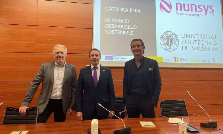 Durante el acto de presentación, que contó con la participación del rector de la UPV, José E. Capilla, y el director del Instituto Universitario Valenciano de Investigación en Inteligencia Artificial (VRAIN), Vicent Botti, Paco Gavilán, presidente de Nunsys Group, resaltó la importancia de la transformación digital para todas las empresas, especialmente para las pequeñas y medianas. "El mayor reto de las empresas con la inteligencia artificial es la brecha digital. Tenemos que ser capaces de hacer llegar a las empresas, no solo la IA, sino todo el abanico de tecnologías, y sobre todo a las pymes", afirmó Gavilán. Nunsys, como referente en innovación tecnológica en España, juega un papel clave en el fomento del uso de la inteligencia artificial como herramienta estratégica para el desarrollo sostenible. Según Gavilán, la colaboración con la UPV permitirá formar a los futuros expertos en IA que liderarán la implementación de soluciones tecnológicas en sectores críticos como la energía, el medio ambiente y la agricultura de precisión, áreas donde la IA puede marcar la diferencia en la reducción del impacto ambiental. - Compromiso con el desarrollo sostenible