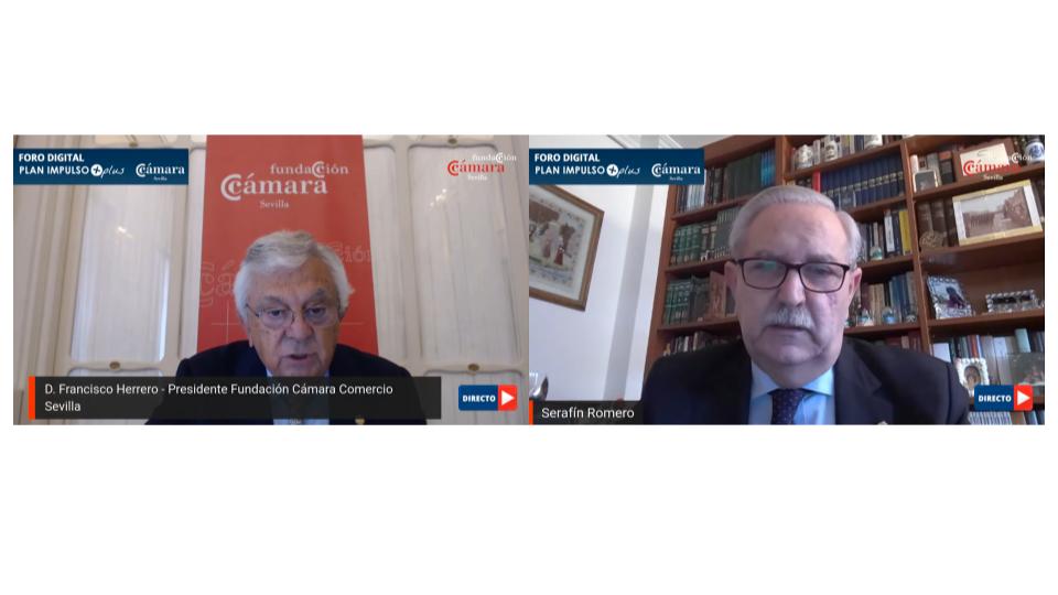 El presidente del Consejo General de Colegios Oficiales de Médicos de España, Serafín Romero, habla durante un foro digital organizado por la Fundación Cámara de Comercio de Sevilla, sobre «La profesión médica en tiempos del COVID».