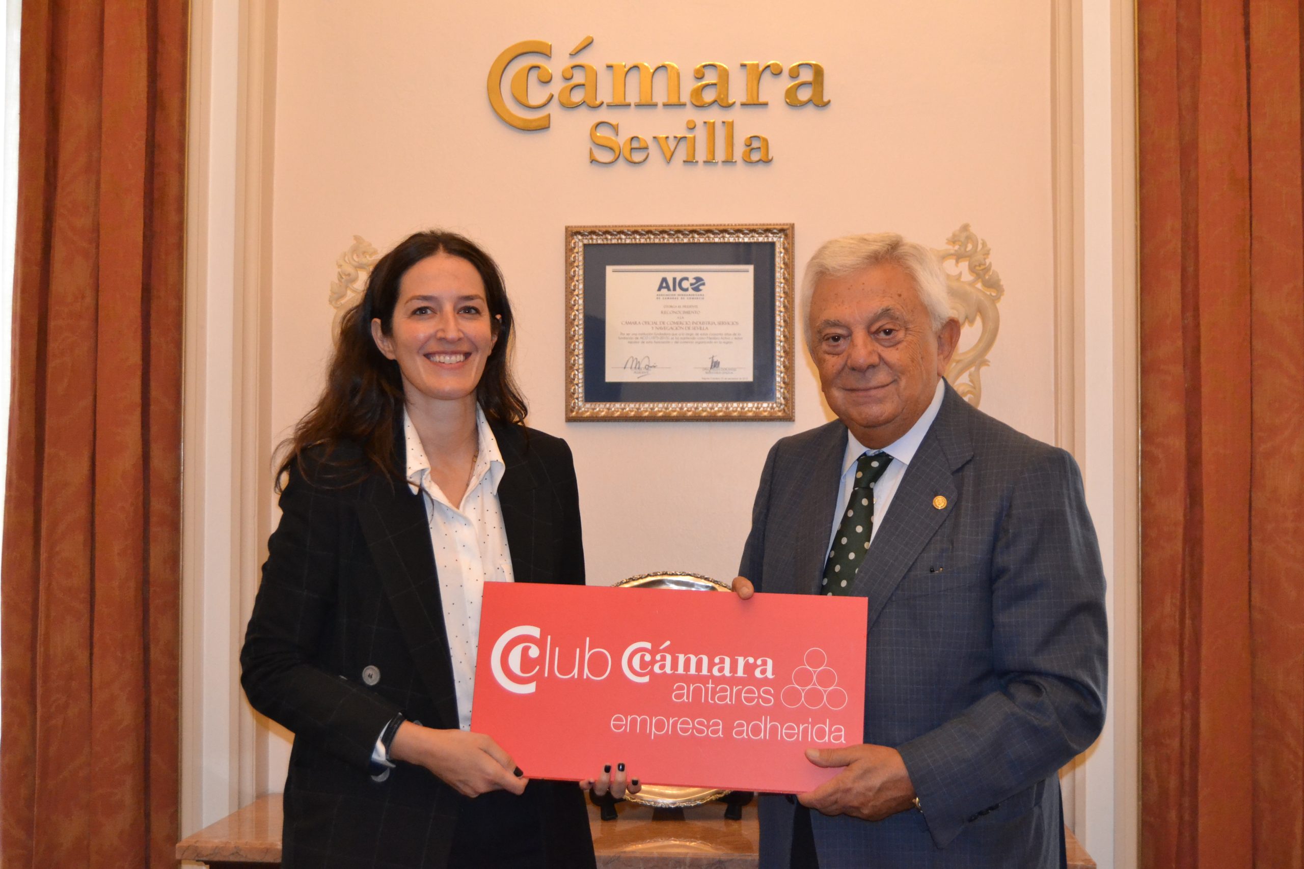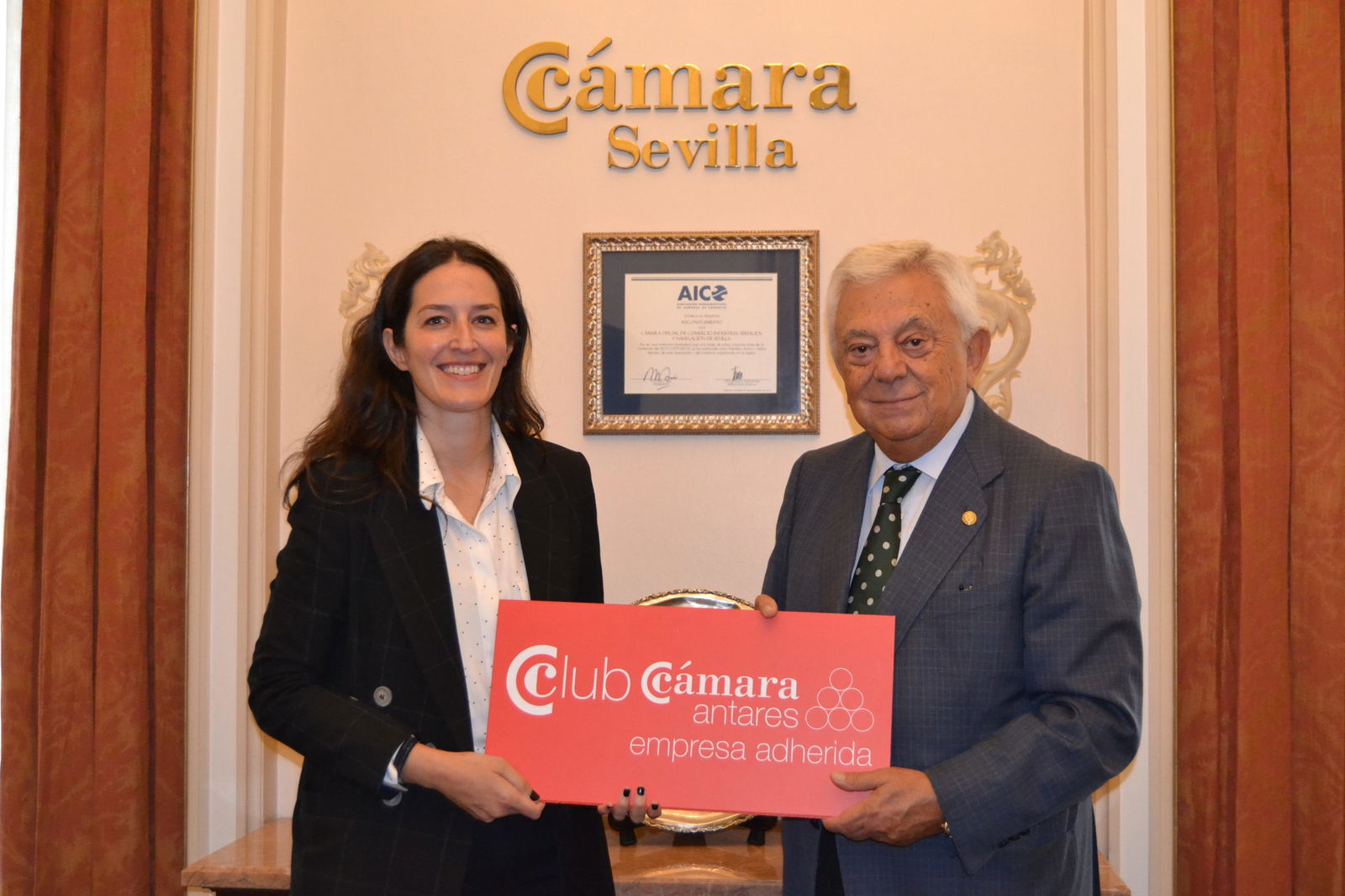 Se incorpora al Club Cámara Antares en la modalidad de Adherida la empresa PLASTICOSUR, Laura Garrido Romero, directora de marketing, Comercial y Desarrollo de Negocio, junto a Francisco Herrero, Presidente de la Cámara de Comercio de Sevilla.