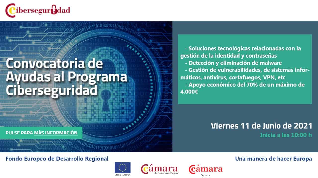 La Cámara de Comercio de Sevilla abre la convocatoria del Programa Ciberseguridad el 11 de junio y va dirigida a 20 pymes y autónomos de la provincia de Sevilla.