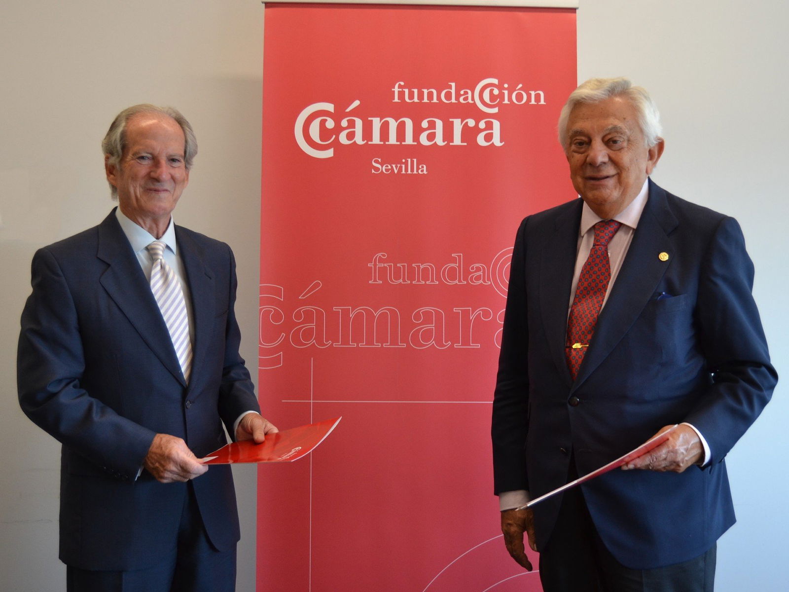 La Fundación Cámara de Comercio de Sevilla y Funddatec han presentado el proyecto «Mayores Digitales» en la sede del Club Cámara Antares tras la firma del acuerdo de colaboración entre ambas entidades por sus presidentes, Francisco Herrero León y Antonio Retamero Mates.