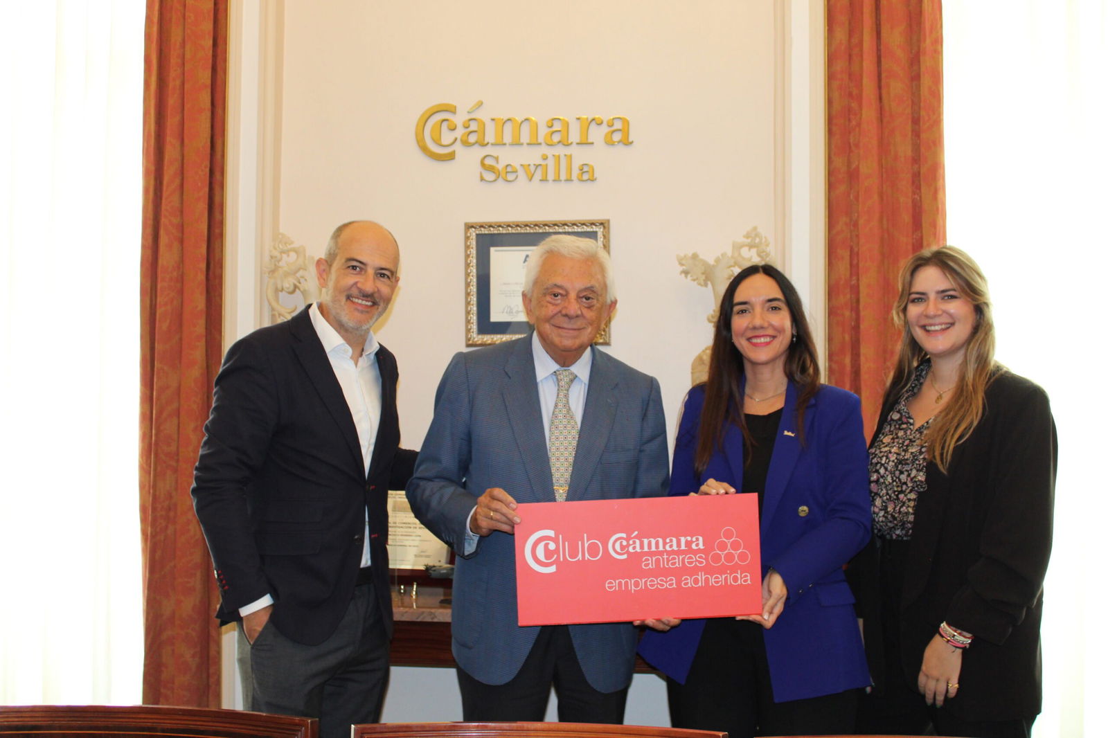 Se incorpora al Club Cámara Antares en la modalidad de Adherida la empresa RADISSON HOTEL GROUP. David Torres, su Country Director of Sales, Cristina San Julián, su General Manager y Rocío del Águila, su Account Manager Spain junto a Francisco Herrero, Presidente de la Cámara de Comercio de Sevilla.