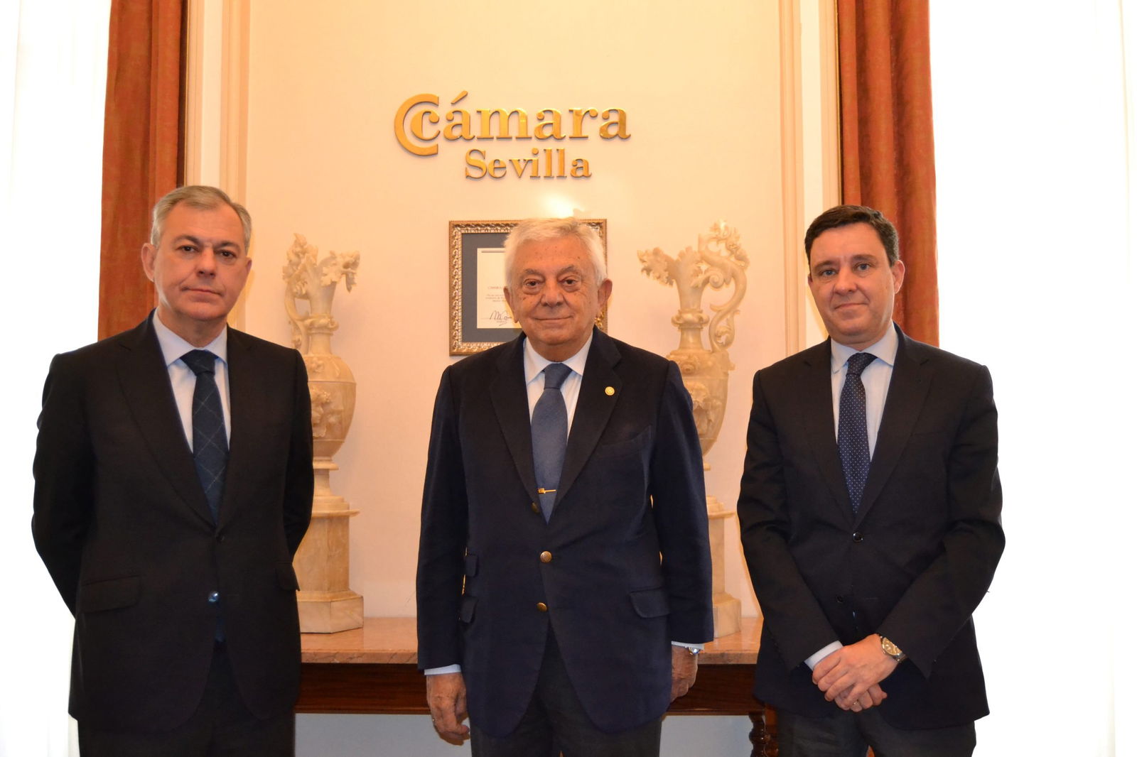 El candidato del PP a la Alcaldía de Sevilla, José Luis Sanz se ha reunido hoy con el presidente de la Cámara de Comercio, Francisco Herrero, a quién ha presentado su plan para activar la economía de la ciudad, basado en una bajada de impuestos, beneficios fiscales a familias, empresas y autónomos, así como el impulso del área metropolitanas y de las infraestructuras que nunca llegan.