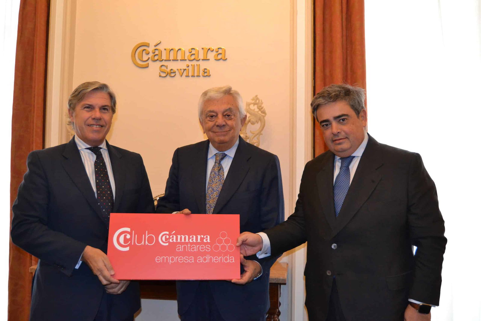 Nueva incorporación al Club Cámara Antares. D. Armando Rozados y D. José María Rueda junto al Presidente de la Cámara de Comercio de Sevilla.