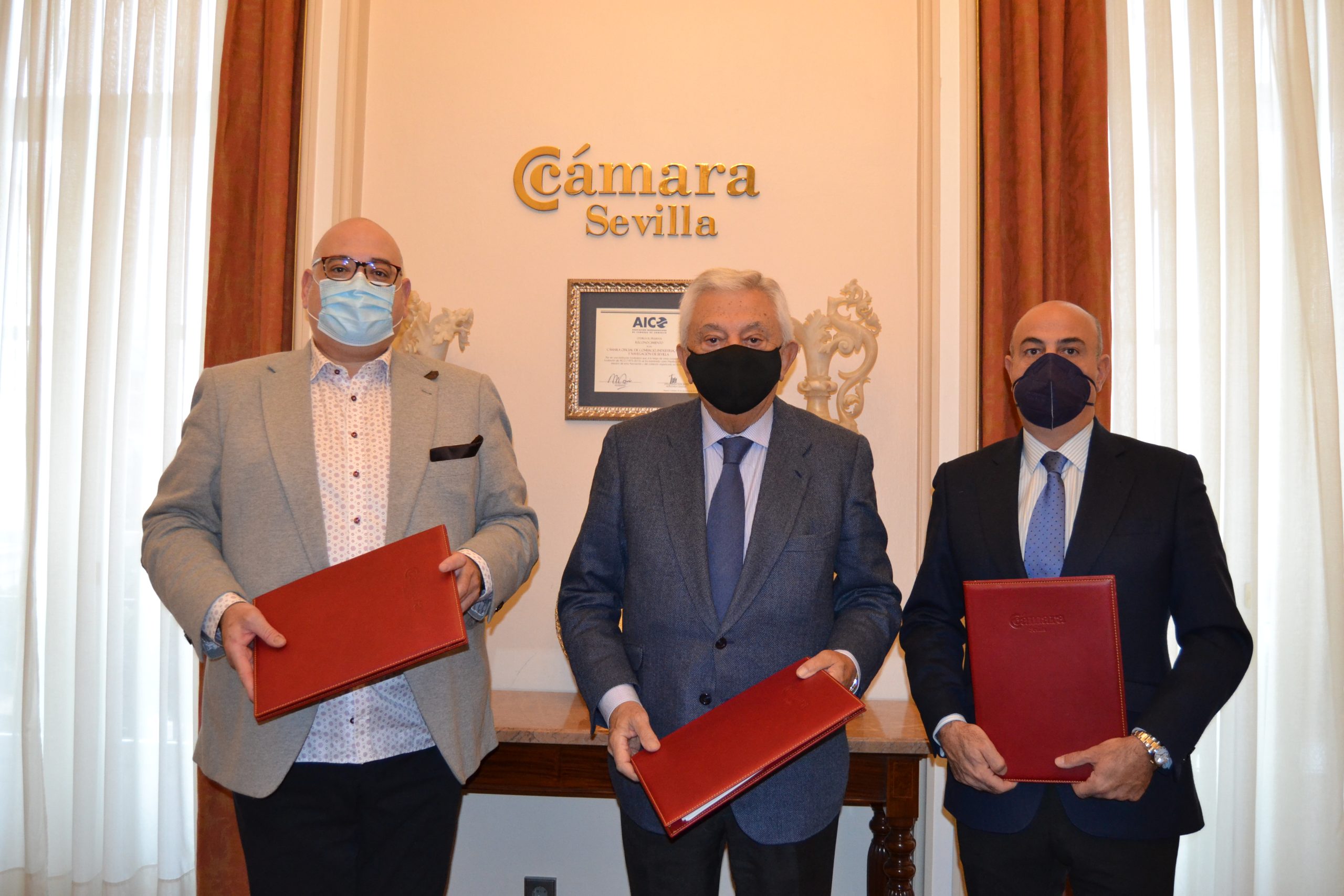 El presidente de la Cámara de Comercio de Sevilla, Francisco Herrero, y el presidente del Club Español de Alta Gastronomía (CEAG) en Andalucía, Javier Sánchez, firman un acuerdo para promocionar la Alta Gastronomía sevillana a través de la colaboración público-privada, vinculando su evolución a la experiencia de los cocineros con estrellas y los jóvenes valores que reinventan la cocina de Sevilla, y que son tendencia gastronómica.